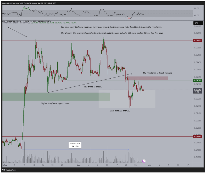 值得注意的是,该分析师认为,ETH/BTC 对的 0.02325 水平是最重要的门槛。他认为,突破这一水平可能会引发以太坊当前上涨趋势的强劲延续。