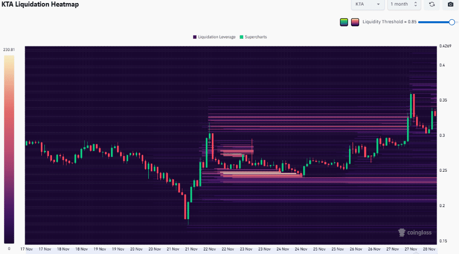 - 持续的资本流入和良好的市场情绪可能在短期内推动 KTA 股价达到 0.60 美元。