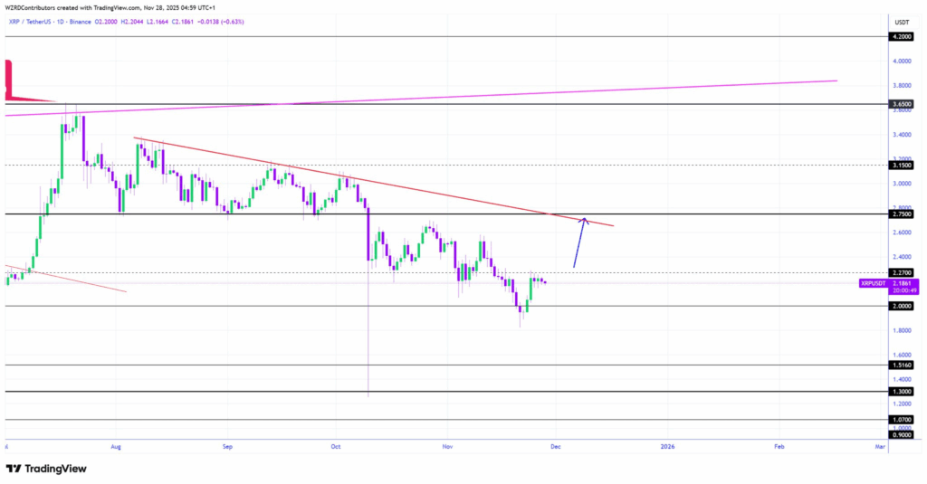 在此背景下,分析师 CRYPTOWZRD 指出,XRP 价格必须将 2.27 美元的阻力位转化为支撑位,才能继续上涨。