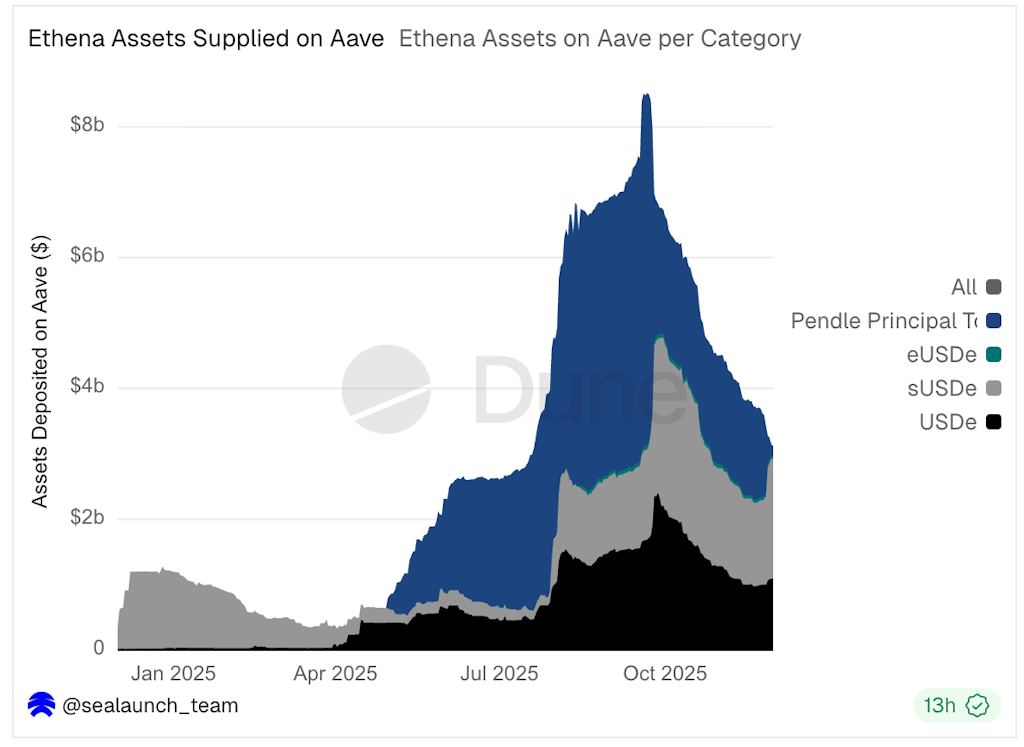 - 11 月份 Pendle sUSDe PT 到期,使 Aave 的规模大幅缩水,敞口从超过 54 亿美元降至约 3.4 亿美元。