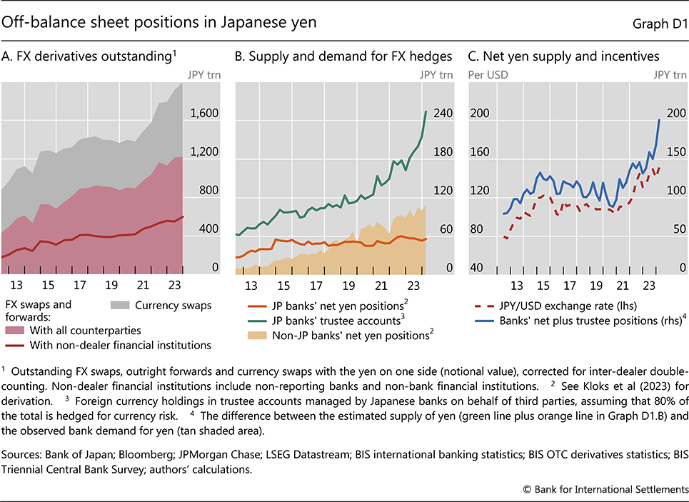 - 以日元为一方的名义外汇掉期和远期合约规模达到14.2万亿美元(约合1994万亿日元)。这些头寸属于表外交易,不计入传统的债务指标。