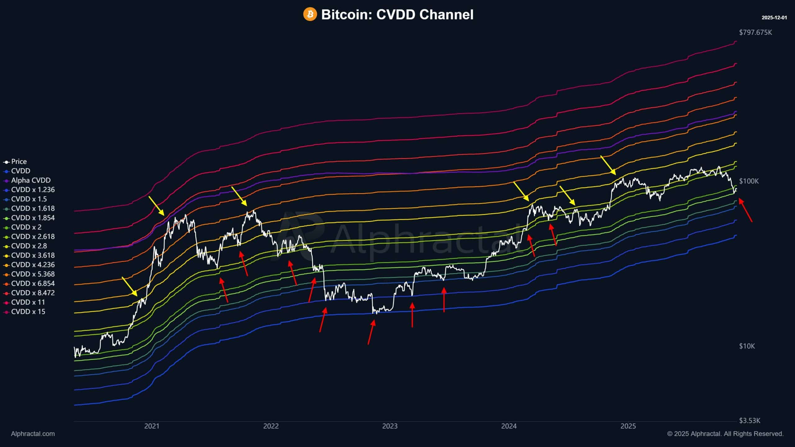 链上数据清晰明了。CVDD通道(用于寻找关键支撑位)将这条底线设定在 88,000 美元附近。