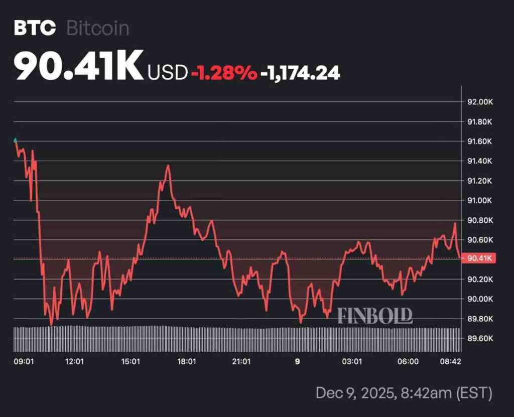 事实上,截至发稿时,“数字黄金”的交易价格为每盎司90,410美元,当日下跌1.28%,且已确认熊旗图案有可能导致价格回调至 7 万美元附近。