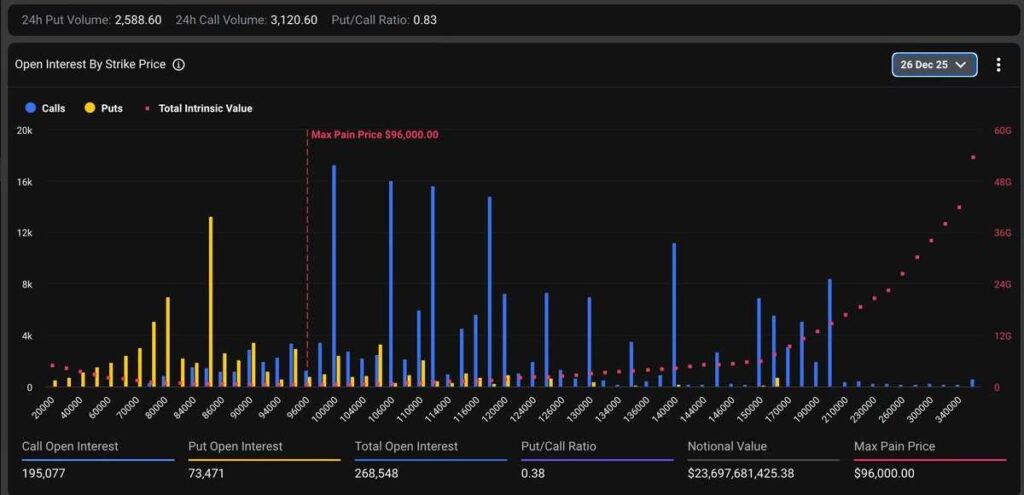 不利的一面是,看跌期权集中在 85,000 美元附近,表明关键支撑位正受到密切关注。所谓的“最大痛点”,即期权持有者可能遭受最大损失的价格,接近 96,000 美元。