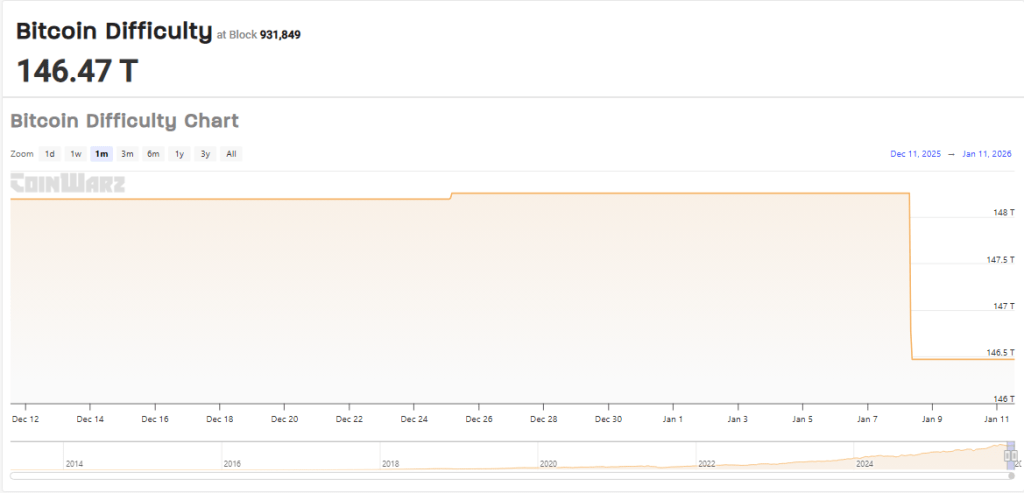 æ ¹æ® CoinWarz åå ¶ä»è¿½è¸ªæºæç颿µï¼ä¸ä¸æ¬¡é¾åº¦è°æ´é¢è®¡å°å¨ 2026 å¹´ 1 æ 22 æ¥è¿è¡ï¼å±æ¶éçå¹³ååºåæ¶é´åè½è³ 10 åéçç®æ åºé´ï¼é¾åº¦å¯è½ä¼ååè³ 148 ä¸äº¿å·¦å³ã妿è¿ä¸è¶å¿æç»ï¼é¾åº¦è°æ´çæåå°æ¯ææ¶çï¼ç¿å·¥ä¹é´çç«äºå¯è½ä¼å次å å§ã